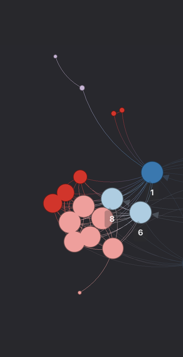 Now we can see that we only have a handful of nodes, and we can recluster the graph to see connections.